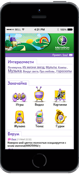 Graphics and design for mobile portal for kids. Done for Megafon company. Portal is platform for communication, news and selling contant (games, music, wallpapers). All content modarates and kids-safe.